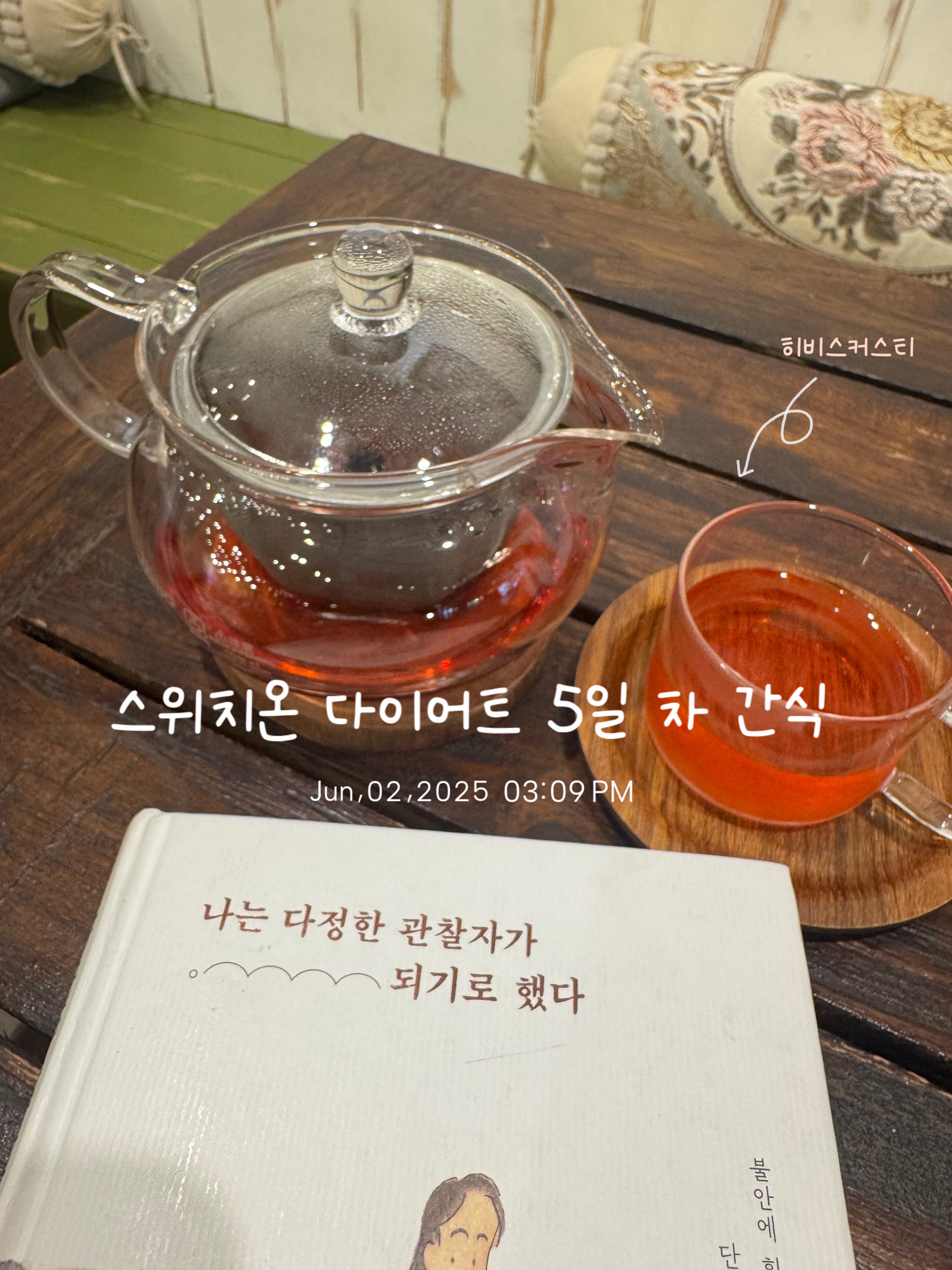아이 학원 드랍해 주고 카페에서 히비스커스 마셨어요
